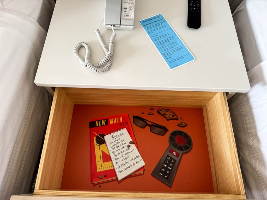 We always love noticing Disney’s attention to detail with the theme included in everything from the art to the night stand to the bathroom.