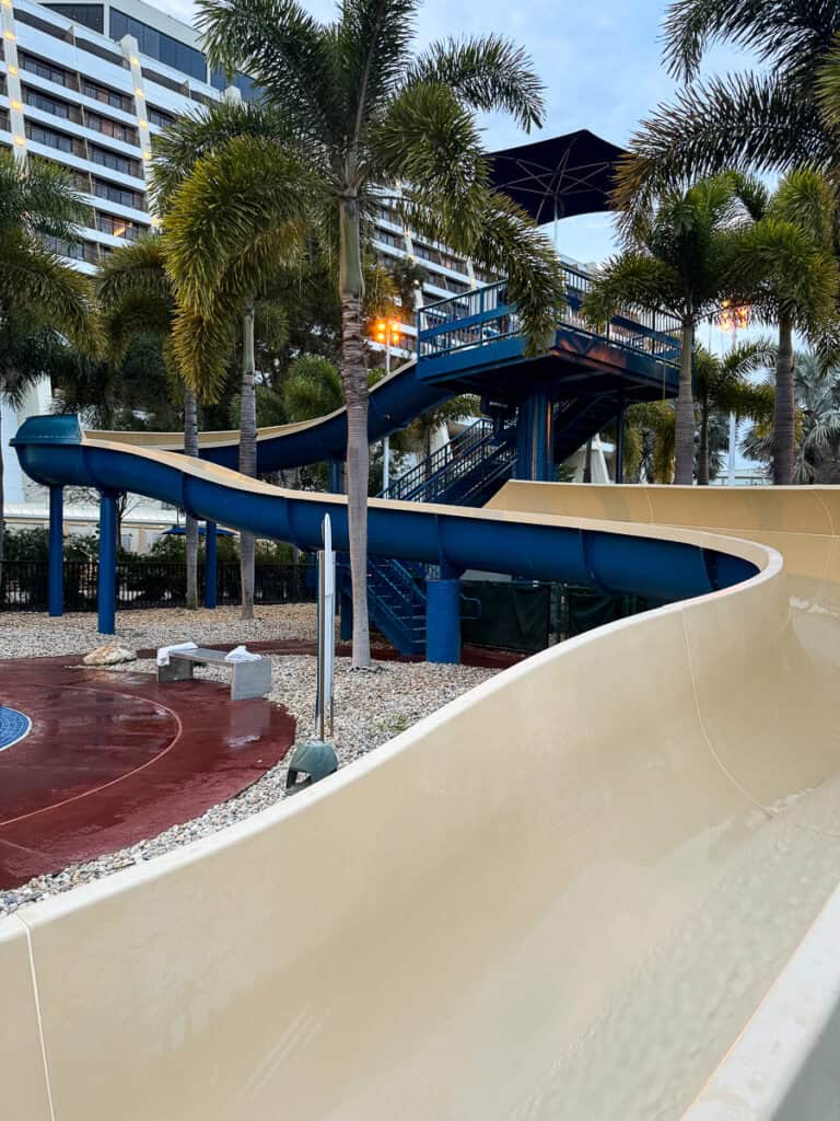 There are 2 pools – the Feature Pool which has marina views and white sand beaches. This pool is heated (which was perfect since we were there in January!) and has a 17 foot waterslide that my kids loved!