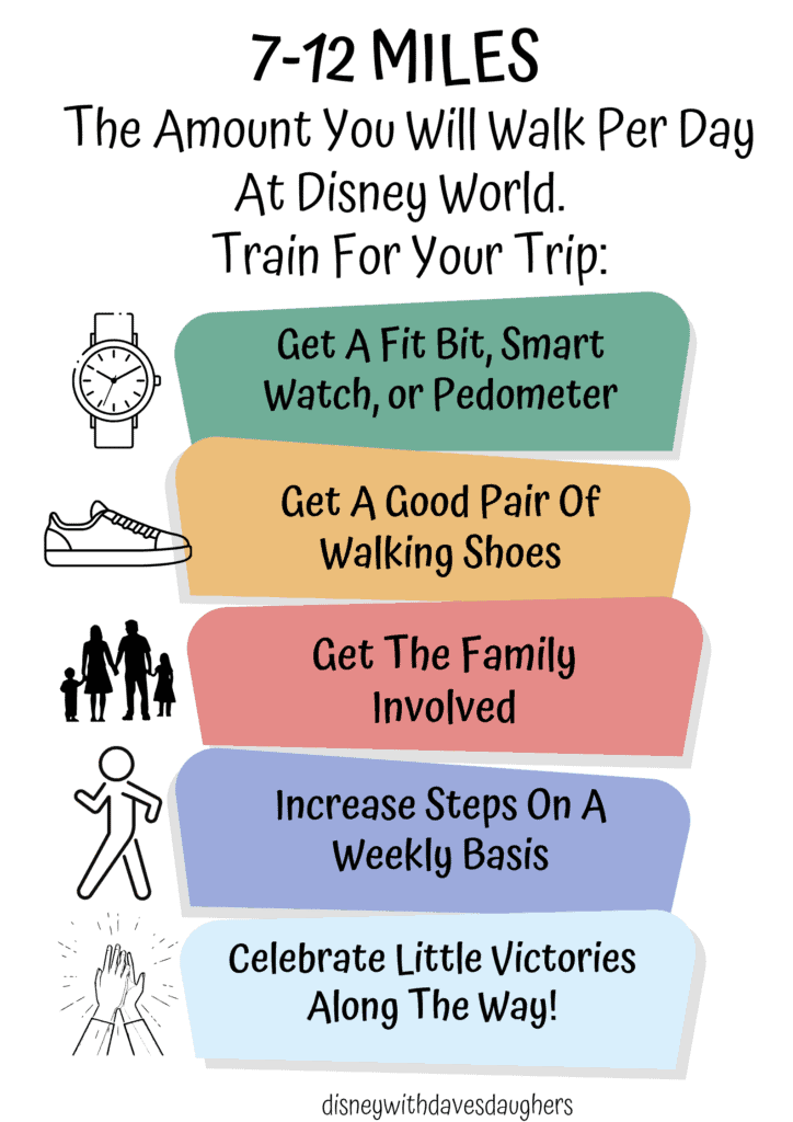 Don’t get too overwhelmed thinking about needing to all of a sudden walk 8 miles right this instant. Remember, at Disney World this will be spread out over an entire day.